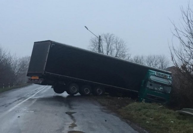 «На в’їзді зі сторони с.Озерце у Княгининок фура з їхала з дороги і перекрила частково рух. Поверхня дорожного покриття примерзла», - йдеться у дописі.