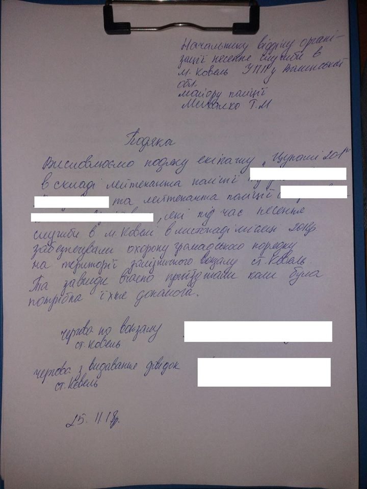 Тим часом, сьогодні ж, ковельські патрульні отримали письмову подяку від працівників залізничного вокзалу в Ковелі. У документі йдеться, що правоохоронці належно слідкували за порядком та вчасно прибували на допомогу.
