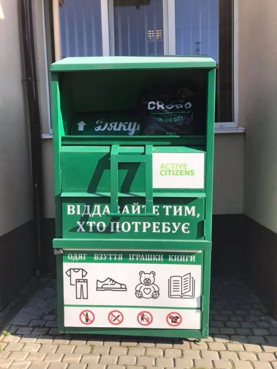 У місті встановлені 2 соцконтейнери для збору одягу: біля ЦНАП з вул. П'ятницької гірки; та на території Молодіжного центру Волині за адресою: Градний узвіз, 5. Чисті речі необхідно запакувати в пакети та просто вкинути в контейнер.