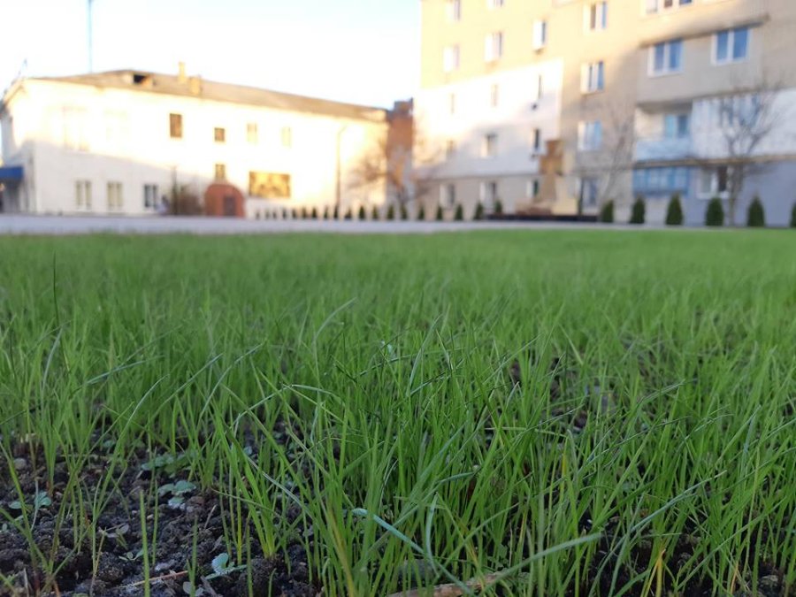 Упродовж жовтня-листопада працівники підприємства «Парки та сквери міста Луцька» підготували та зачистили ґрунт, засіяли й утрамбували траву відповідно до технологій озеленення та висадили туї.