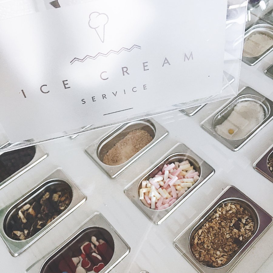 Його можна скуштувати з різними посипками та фруктами. Ціна такого морозива рахується за грами, а не порцію, тому ви можете взяти собі чи дитині стільки, скільки душа забажає.