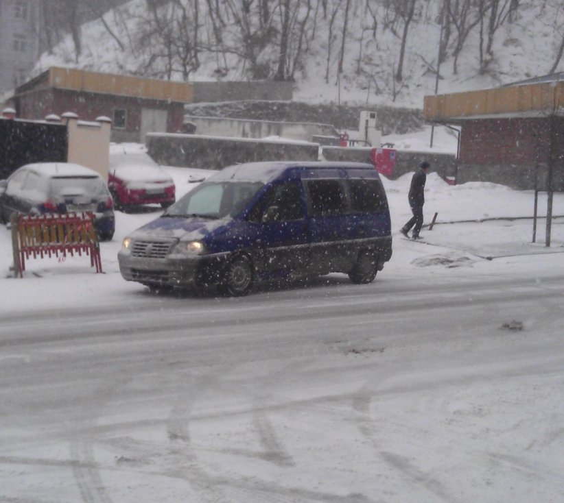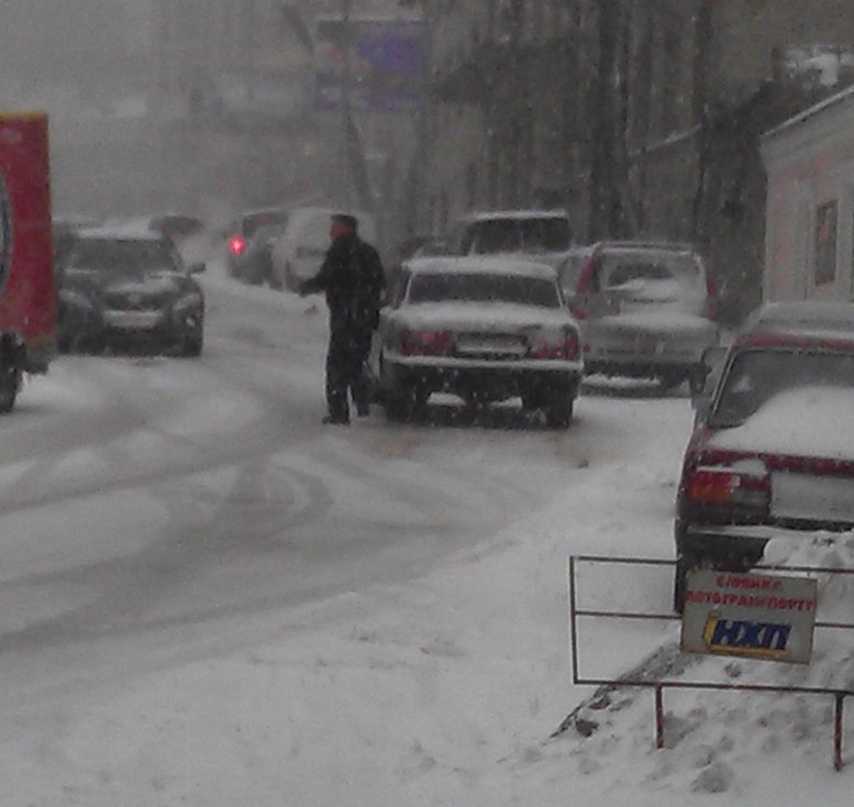 Водій на «Волзі" не зміг виїхати на Кудрявський узвіз. Дістав суміш з піском, яку завчасно приготував для такого випадку, щоб посипати під колеса. Але і цього виявилося недостатньо.