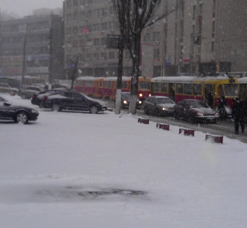 Найбільше проблем виникло у центрі міста. Стоять бульвар Шевченка в обидва боки, вулиці Володимирська, Ярославів Вал, Богдана Хмельницького, Велика Житомирська та інші, - пише Газета.ua.