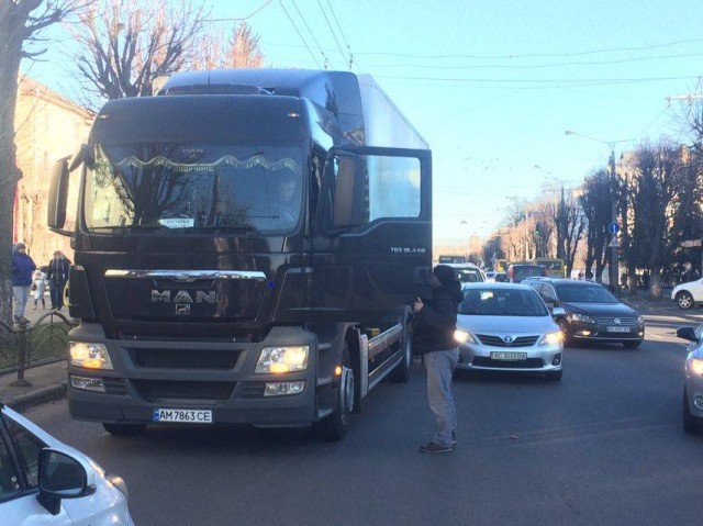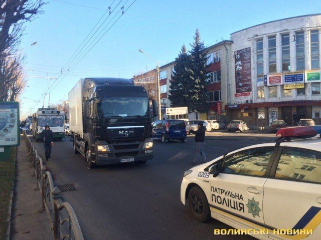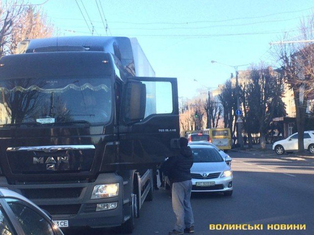 Через аварію – величезний затор: у Луцьку зіткнулися фура та легковик. ФОТО