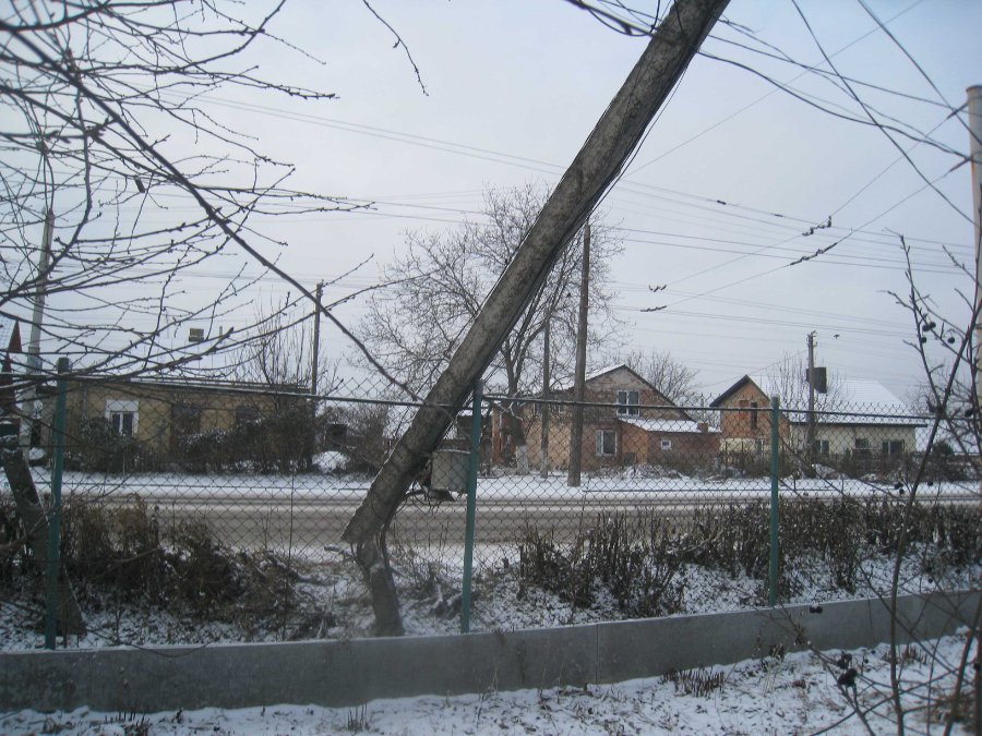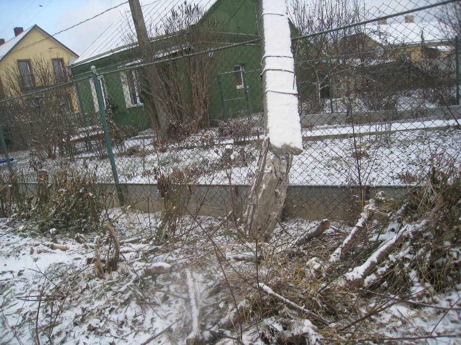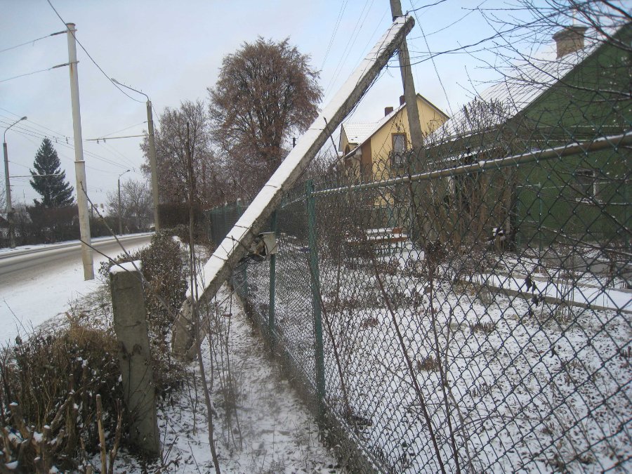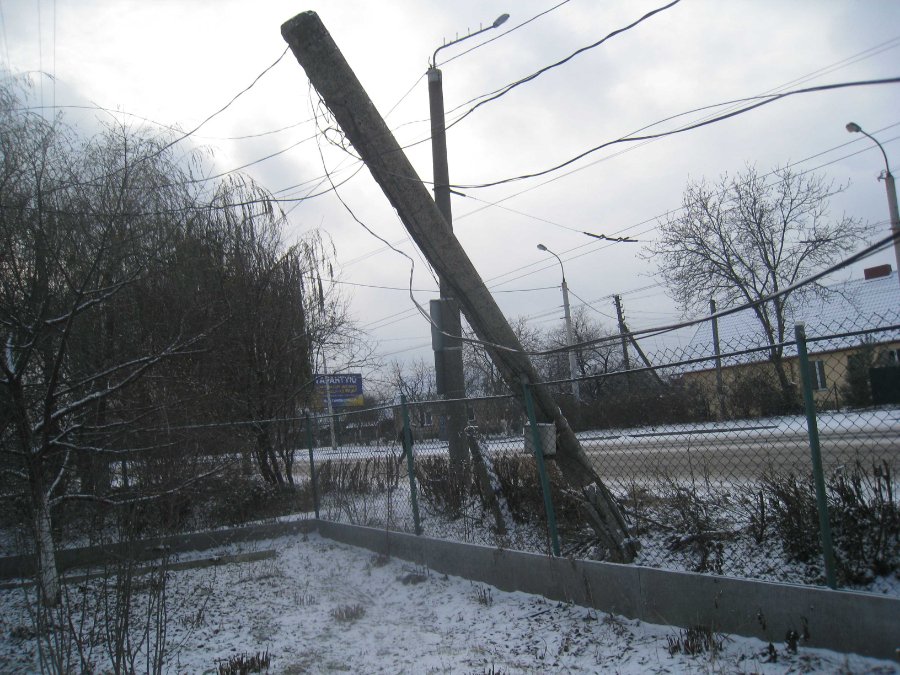 Жінка переконує, що у ніч на 1 грудня автівка врізалася у бетонну електроопору біля будинку на вулиці Ковельській, 110. Опора впала на паркан і тепер просто нависає над ним.