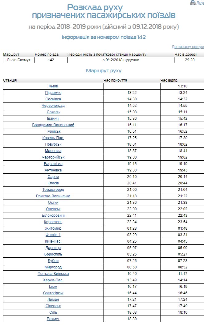 У зворотньому напрямку поїзд вирушатиме із Бахмута об 23:20 та прибуватиме до Львова о 04:21.