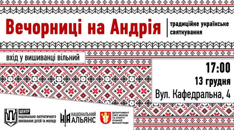 13 грудня о 17:00 у "Центрі національно-патріотичного виховання дітей та молоді у місті Луцьк" (вул. Кафедральна, 4) відбудеться традиційне святкування Андрія.