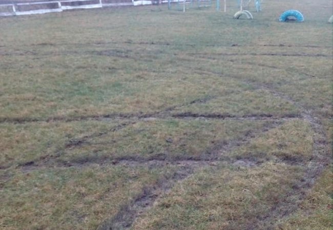 Нагадаємо, до поліції надійшла інформація від небайдужих громадян, що хтось заїхав на трав’яне покриття шкільного футбольного майданчика села Купичів та пошкодив його.