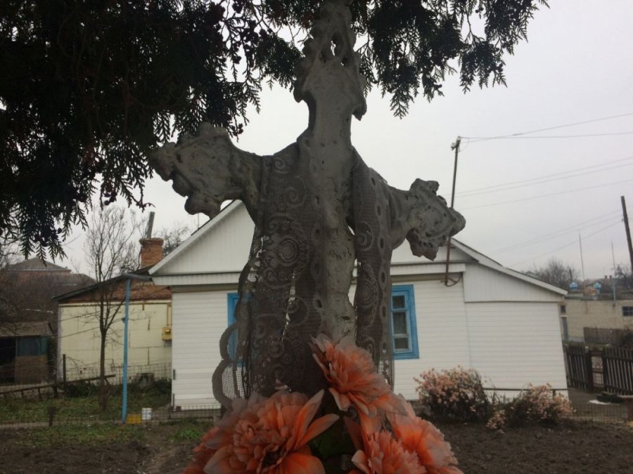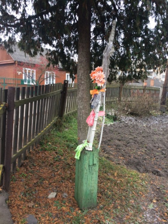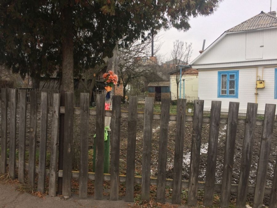 У Володимирі-Волинському на перехресті вулиць 20 липня та Карбишева, на городі у пенсіонерки, стоїть хрест.