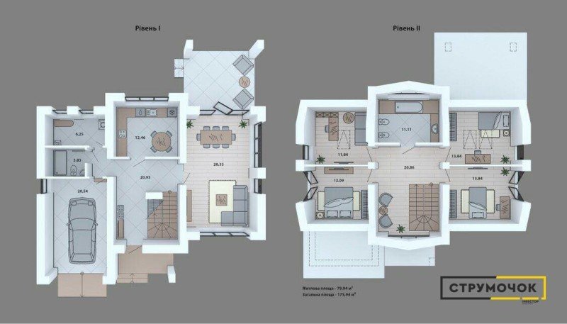 Загальна площа будинку – 175,94 кв. м, житлова – 79,94. Вартість котеджу разом із прибудинковою територією (8,5 сотки) становить $59 000.