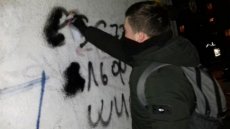 У Луцьку учасники громадського формування «Національні дружини» замалювали рекламу наркотиків на вулицях міста.