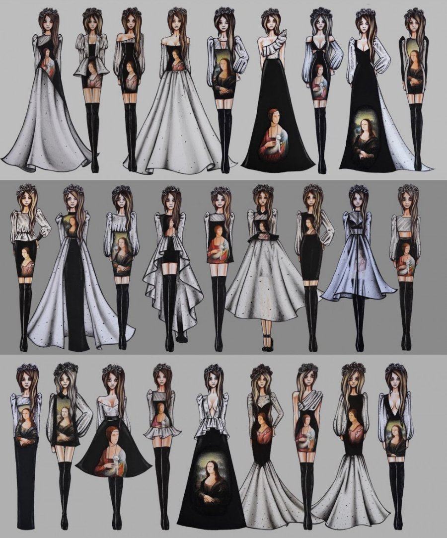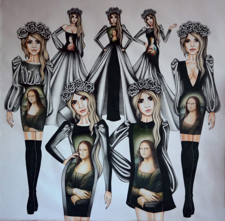 За її словами, у 2O14 році вона захистила свій диплом спеціаліста на факультеті дизайну в ЛНТУ з колекцією: «Italy / Da Vinci / Dolce&Gabbana». Прототипами стали стиль D&G, Ульяни Сергеенко, Valentino. А натхненням стала сама Італія та геній свого часу Леонардо Да Вінчі. Художниця у своїй колекції хотіла передати своє бачення італійської жінки, мистецтва і високої культури Італії.