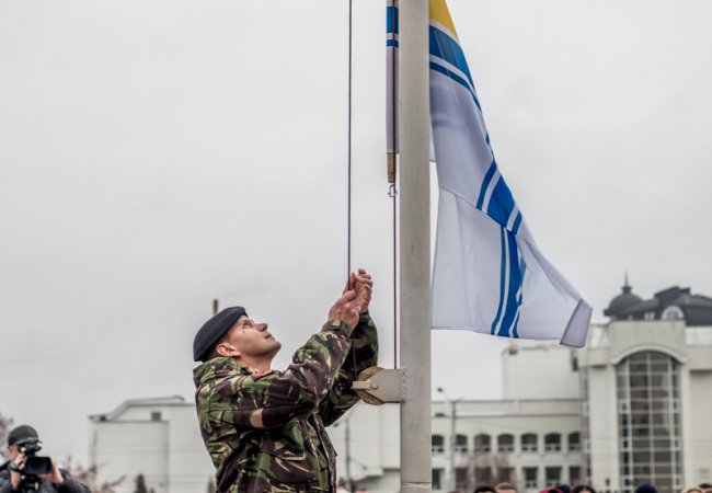 Прапор Військово-Морських сил урочисто підняв атовець з Волині Анатолій Горун, частиною життя якого стала служба у лавах морської піхоти.
