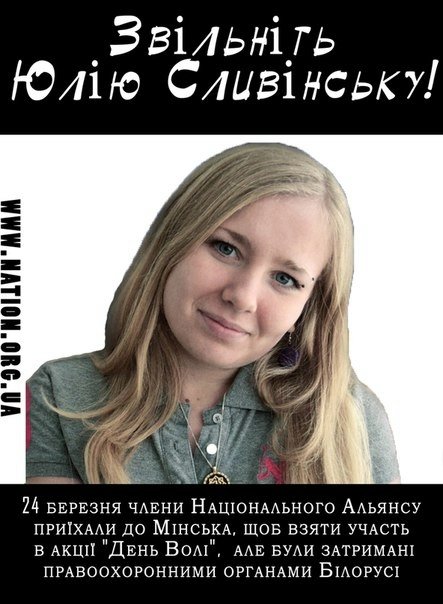 Нагадаємо, у Мінську 24 березня затримали трьох активістів всеукраїнської молодіжної організації «Національний Альянс»: Юлію Грищук, Назара Зеліновського і Юлію Сливінську. Молоді люди поїхали у сусідню країну, щоб взяти участь у щорічній акції білоруської опозиції «День Волі».