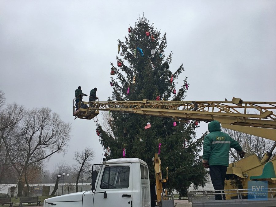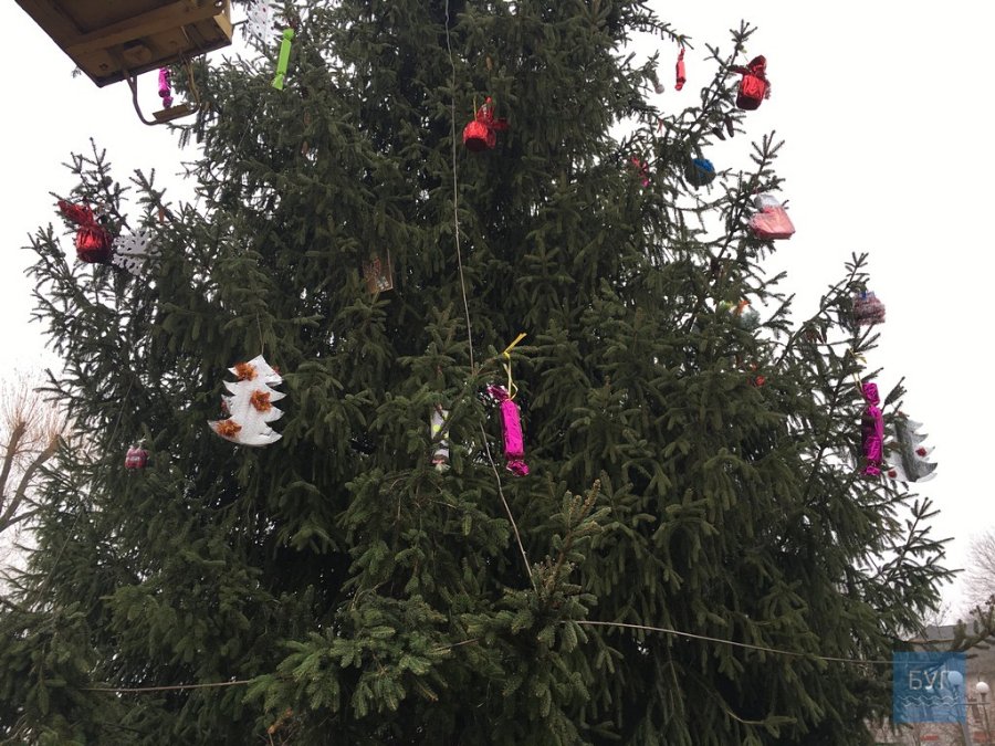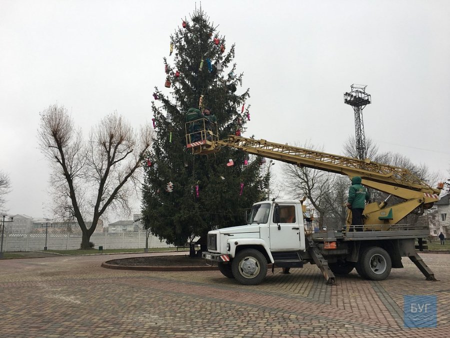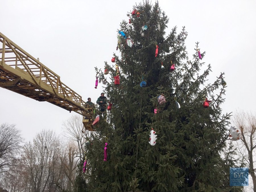 Як розповіла насальник дільниці благоустрою ВУКГ Світлана Жукова, яка координувала на місці роботу, на головну ялинку зібрали іграшки зі шкіл №1, 2, 3, 4, а також з 4-го та 6-го дитячого садка. ЗДО №6 передав найбільше прикрас.