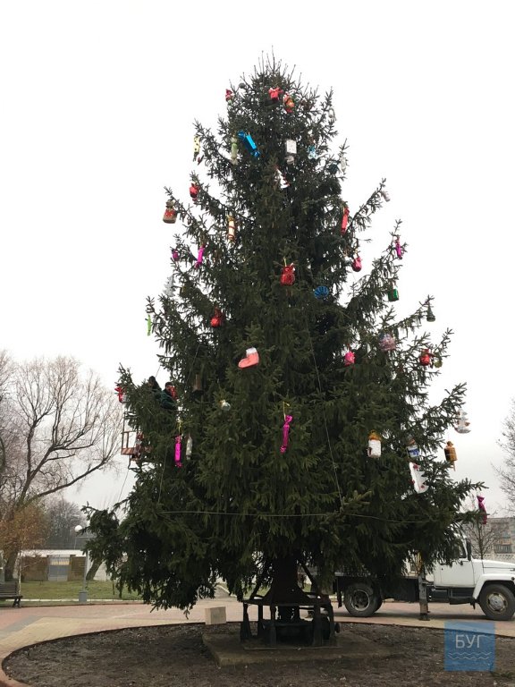 12-го грудня у Нововолинську прикрашали головну ялинку міста іграшками, які виготовили та передали школи і садки.