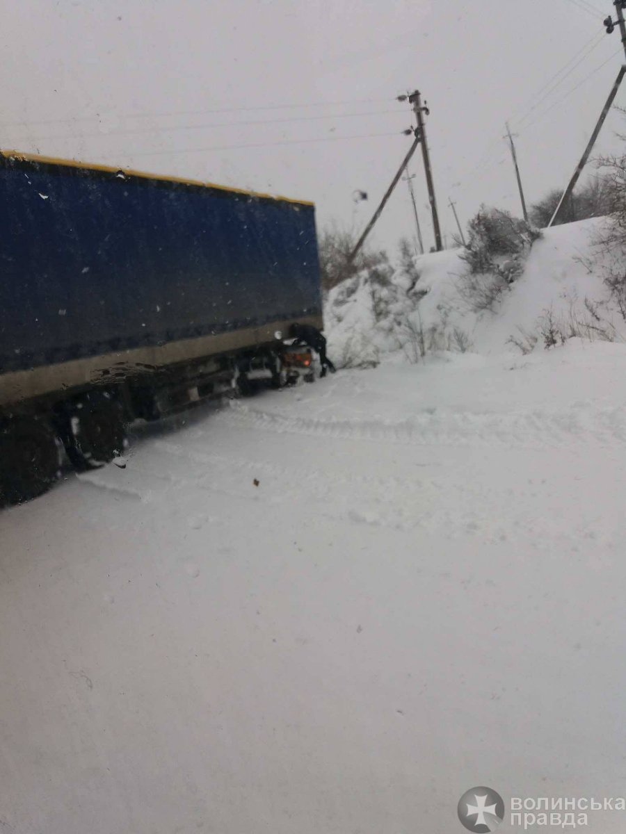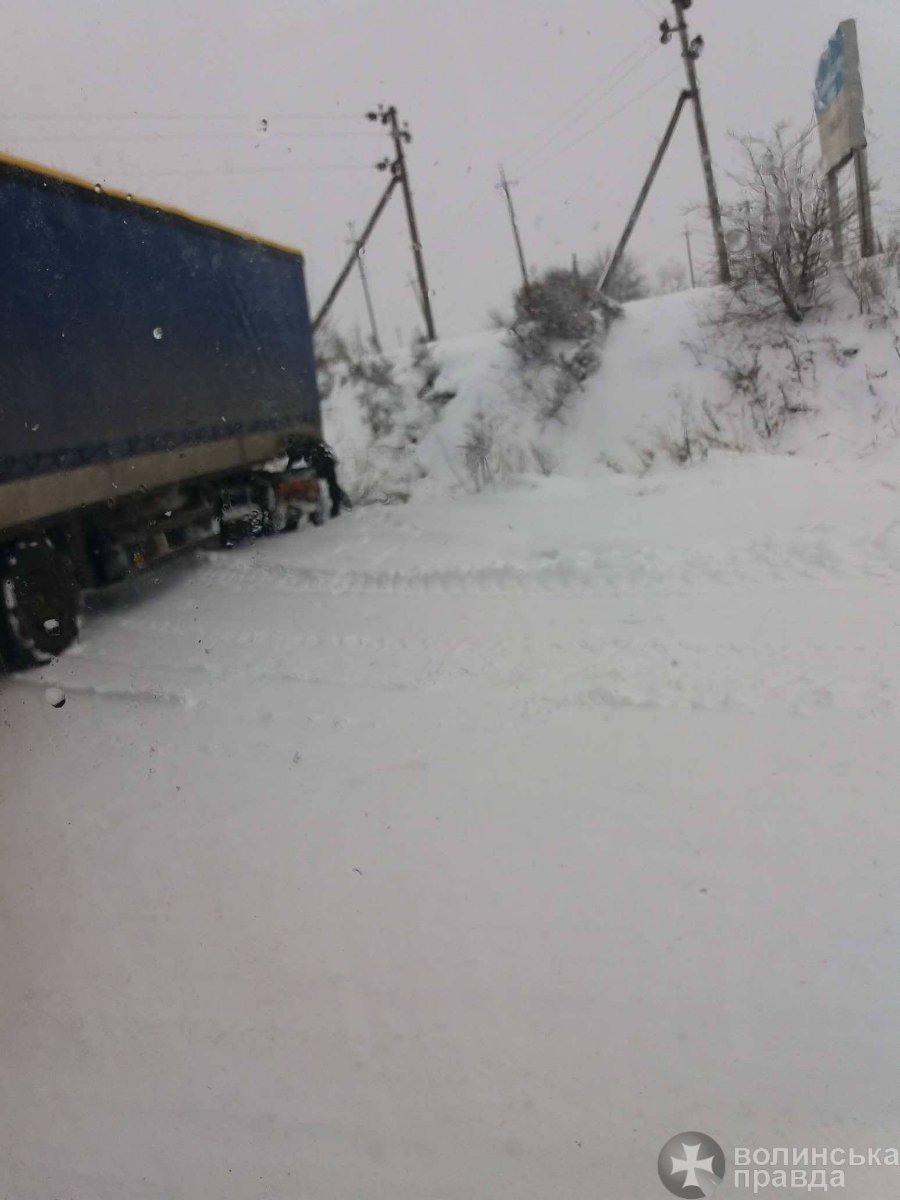 На волинській трасі вантажівка перегородила дорогу. ФОТО