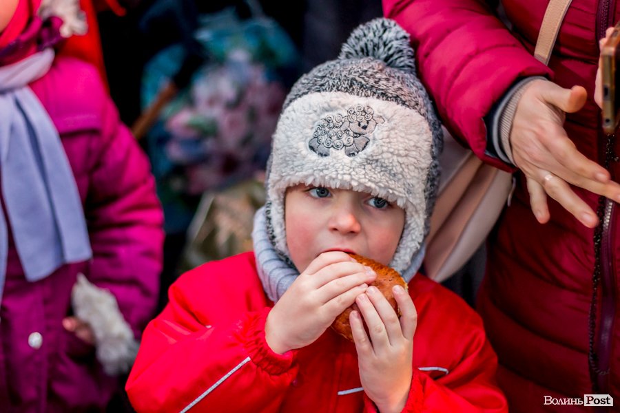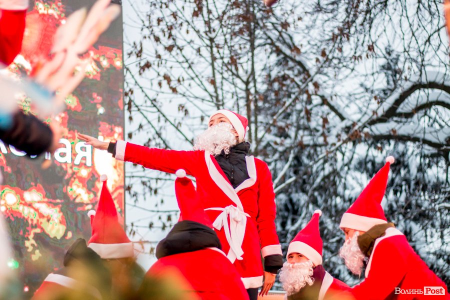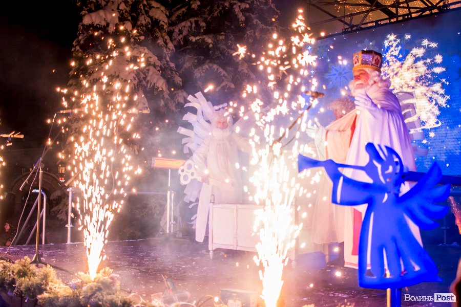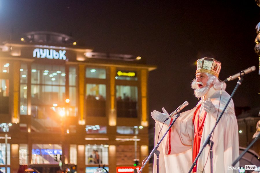 Сам патрон міста святий Миколай з’явився до лучан у супроводі янголят, привітав діток та дорослих з майбутніми святами, побажав здоров’я та мирного неба над головою. А також пообіцяв і надалі охороняти наше місто від усього злого. Разом з янголятами він запалив вогні новорічної ялинки.