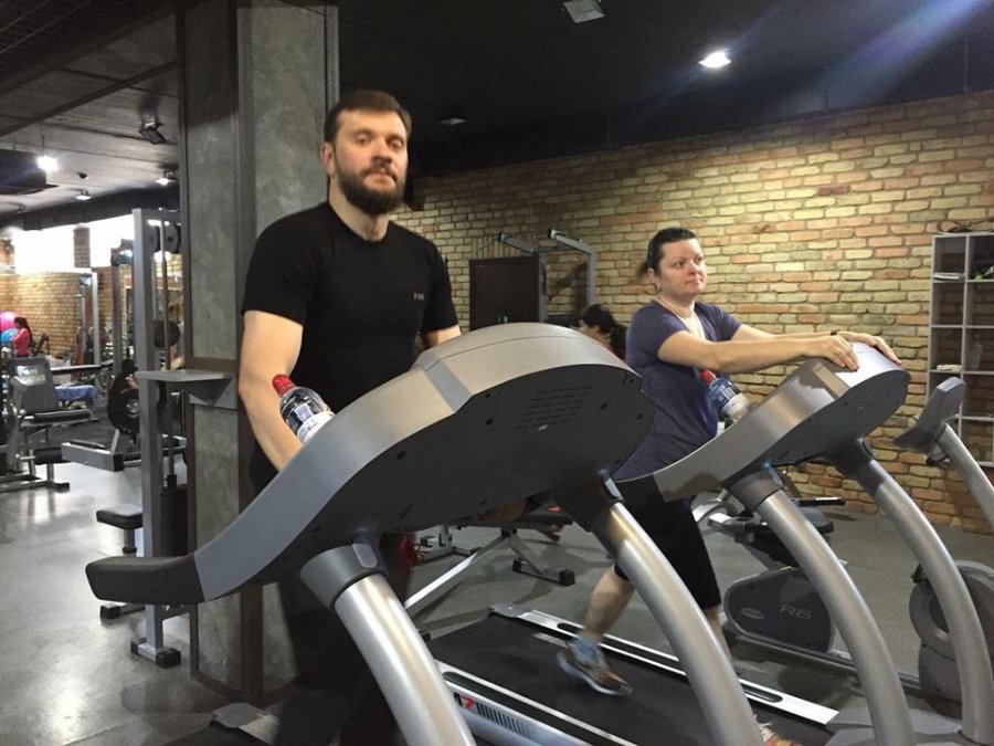 Священик регулярно займається у "тренажерці" разом зі своєю дружиною Оленою.