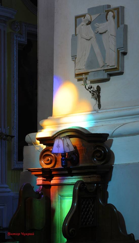 "Доброго ранку, Луцьк. Сьогодні, наші Брати і Сестри західного обряду, святкують Різдво Христове, з яким ми Усих вітаємо! А цих декілька фото, з іншого, мистецького погляду, на неймовірні шедеври, які у нас у місті, у одній з найвеличіших споруд - у костелі Петра і Павла. А ще, іноді там можна спостерігати магію Світла вчення Христа, що свідчить про геній архітекторів і будівничих Храму...Заходьте і милуйтесь, а щира молитва завше доречна...", - написав Віктор Чухрай.
