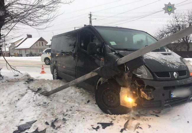 Не впорався з керуванням: на Волині мікроавтобус зніс світлофор. ФОТО