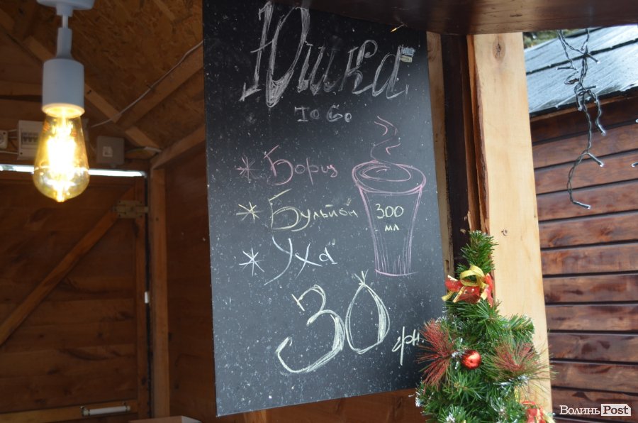 На Театральному майдані Луцька ще у середині грудня запрацювало традиційне різдвяне містечко, що «прокидається» о 13:00 щодня. Тут можна спробувати страви грузинської кухні, придбати святкове печиво чи посмакувати шашликом. Однак цьогоріч родзинкою містечка став новий для міста бренд – «Юшка to go».