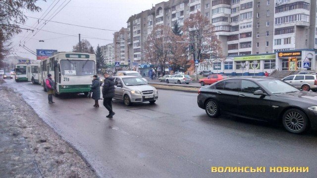 У Луцьку тролейбус наїхав на таксі. ФОТО