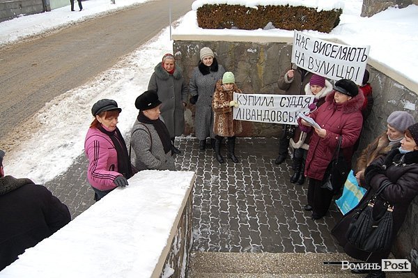 «Серед покупців зокрема – суддя Луцького міськрайонного суду Лівандовська. Вона в 2008 році подавала в суд на примусове виселення. Їй тоді відмовили. А в 2011 році повторно подала в суд. І от, тепер нас виселятимуть», – скаржиться Лазарук.