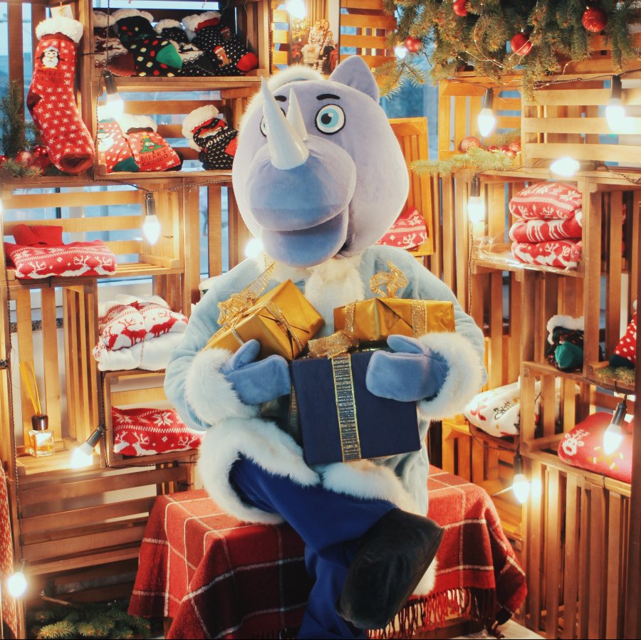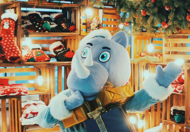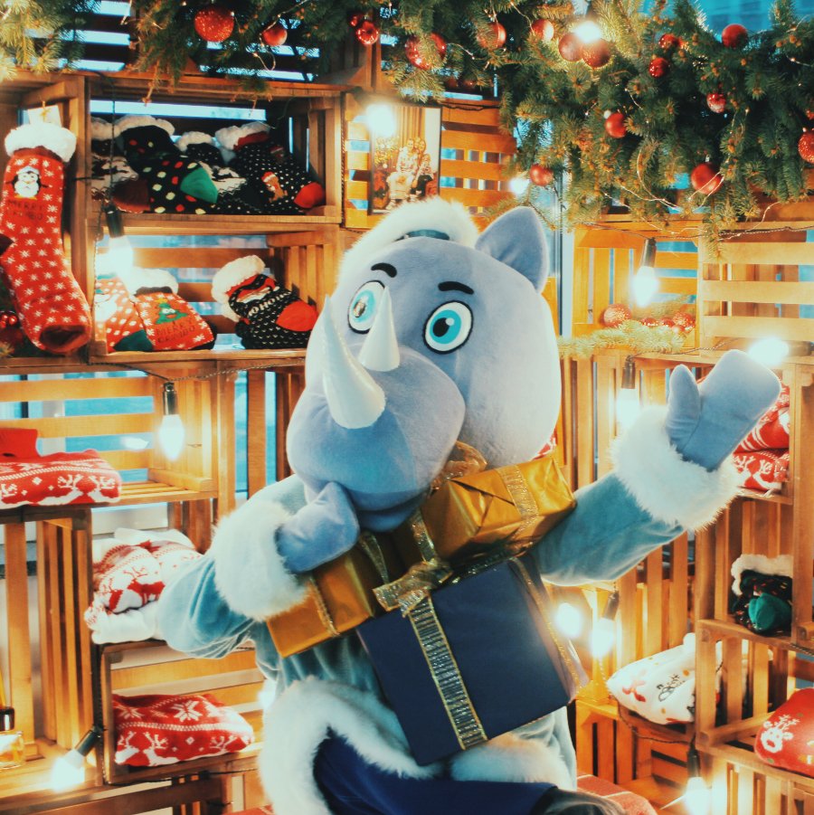 А ще, приходь особисто знайомитися з ним, адже носоріг гулятиме в РЦ «Промінь» в цей день 4-го січня з 18:00 до 19:00, можливо тобі пощастить отримати даруночок особисто від нього!