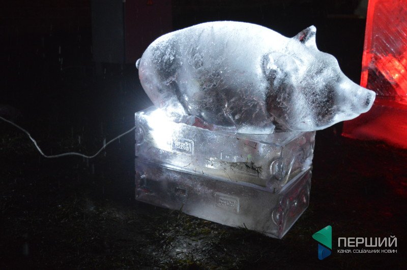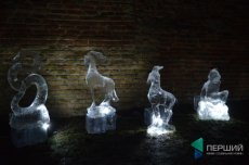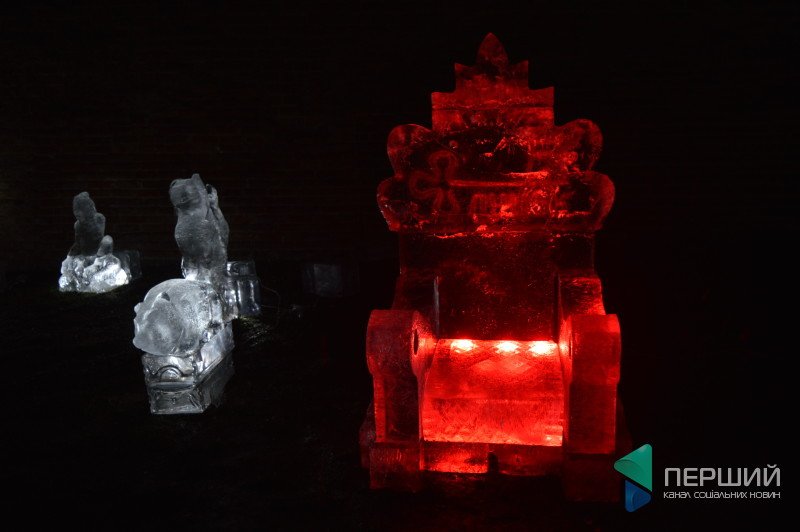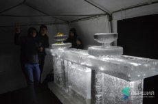 У замку встановили скульптури із льоду у вигляді тваринок, які символізують 12-річний цикл за китайським гороскопом. Також поруч були льодяні трон і барна стійка.