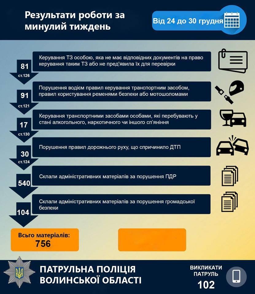 За останній тиждень 2018 року волинські поліцейські затримали 17 водіїв, які були в стані алкогольного, наркотичного чи іншого сп'яніння.