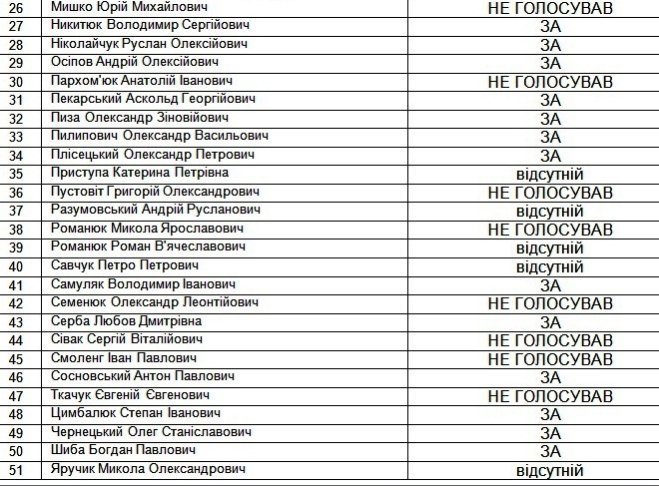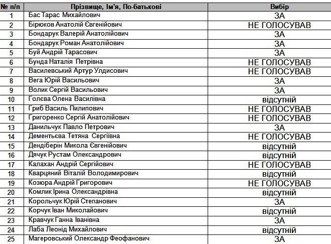 Він надав результати голосування за звернення Луцької міської ради до Голови Верховної Ради, голів парламентських фракцій та позафракційних депутатів про підтримку проекту Закону України «Про внесення змін Закону України про збір та обліку на загальнообов’язкове державне соціальне страхування».