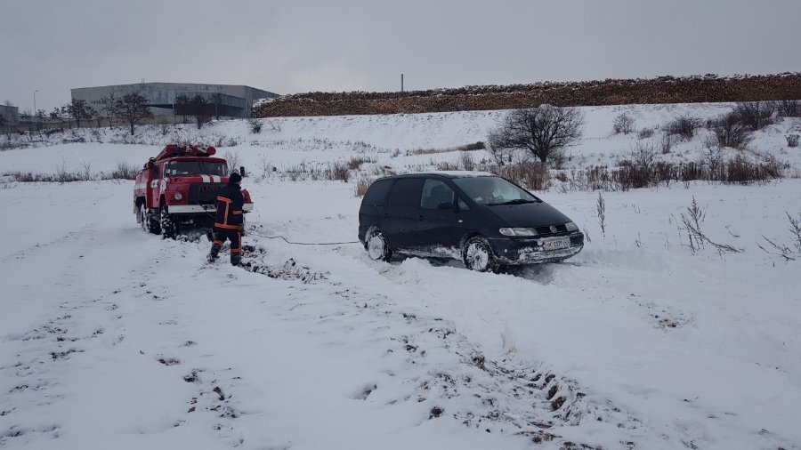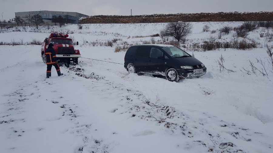 На місце події прибули рятувальники, які здійснили буксирування автомобіля за допомогою тросу на безпечну ділянку дороги.