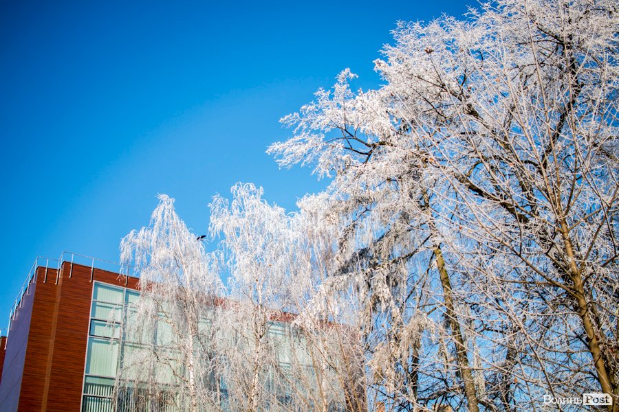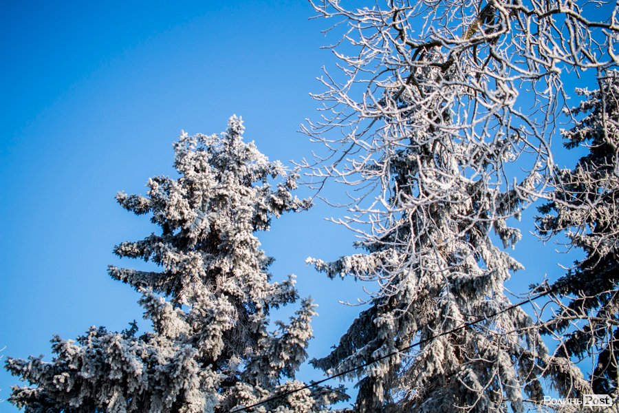 Ранок 8 січня видався справжньою зимовою казкою – кожен кущик, кожне дерево огорнула біла пухнаста сяюча паморозь. Навіть вікна маршруток сьогодні були чарівні – кришталеві нитки створили дивовижні розписи та візерунки.