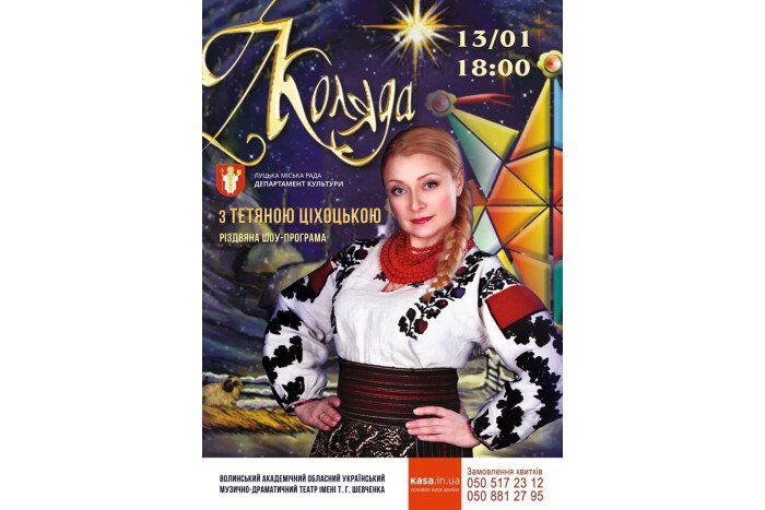 13 січня у Волинському академічному обласному українському музично-драматичному театрі імені Т.Г.Шевченка відбудеться Різдвяна шоу-програма «Коляда з Тетяною Ціхоцькою».