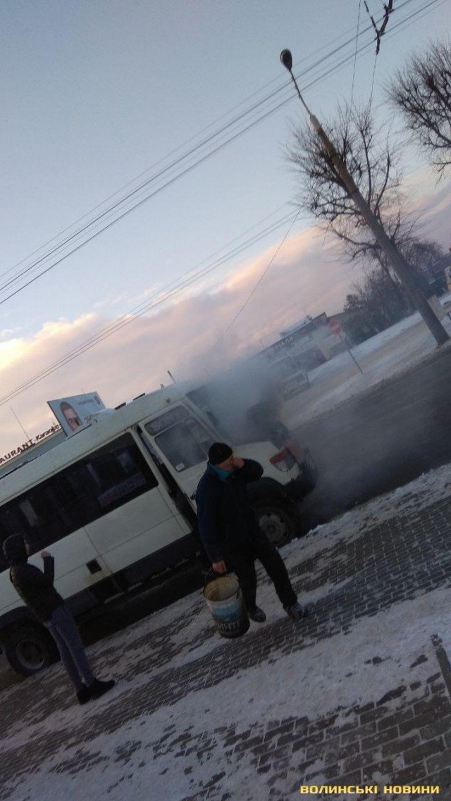 Водій за допомогою вогнегасника намагався загасити вогонь. На допомогу йому поспішив водій маршрутки № 103 Луцьк-Ківерці. Також пасажири почали закидати палаючий капот автобусу снігом.