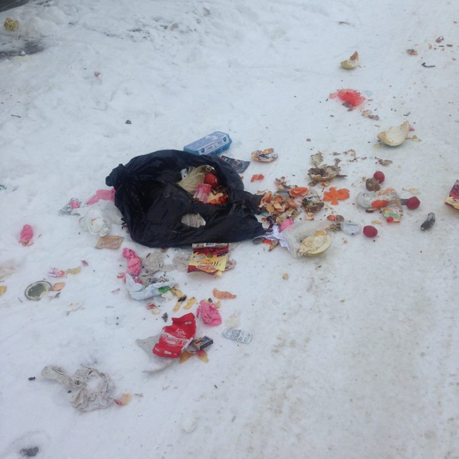 "Христос народився! Славімо його! Так, сьогодні третій день свят, а мені не йметься! Зранку вийшовши на вулицю, я вжахнулася. Собаки порозносили сміття по всій вулиці, те, які "добрі" господарі повиносили зі свого двору. У цього БИДЛОТТЯ логіка спрацьовує так" А би в мене чисто , а як буде далі - не хвилює". І ми ще хочемо в Європу! Та яка нам Європа світить, починати треба з себе! Дітей своїх вчити елементарній культурі, повазі до інших людей, які живуть поруч!" - скаржиться жінка.