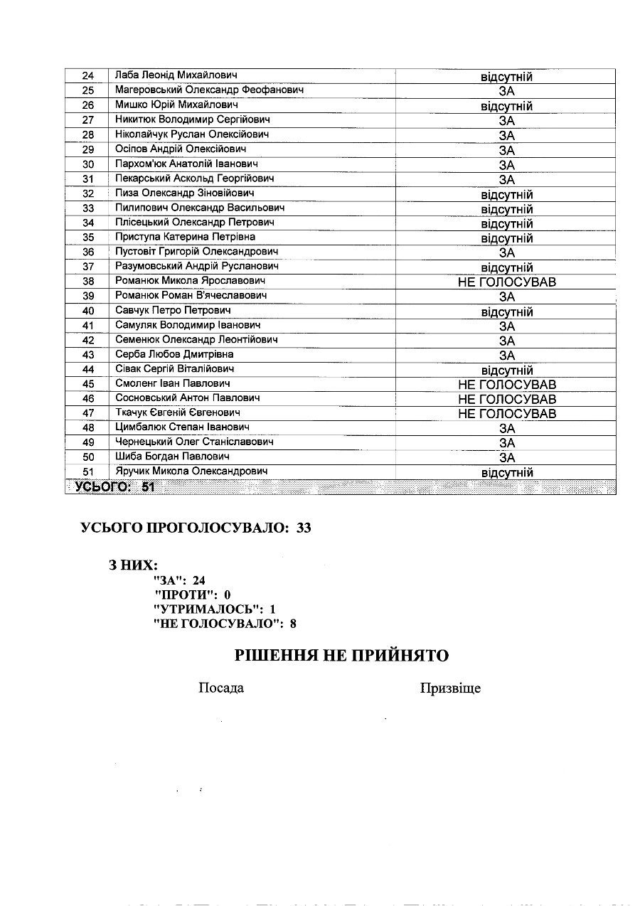 Однак, проект рішення набрав лише 24 голоси підтримки, решта - не голосували чи утрималися.