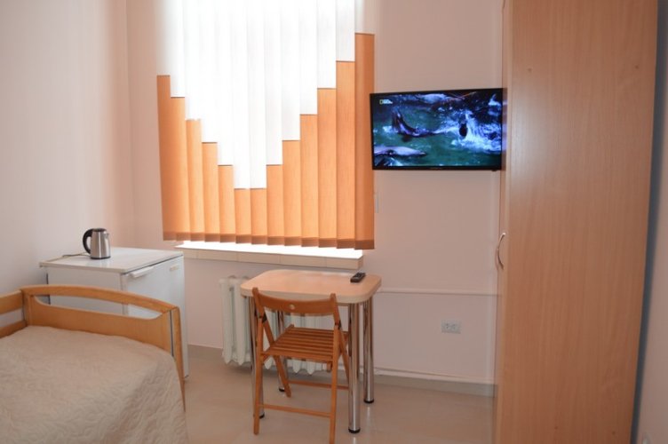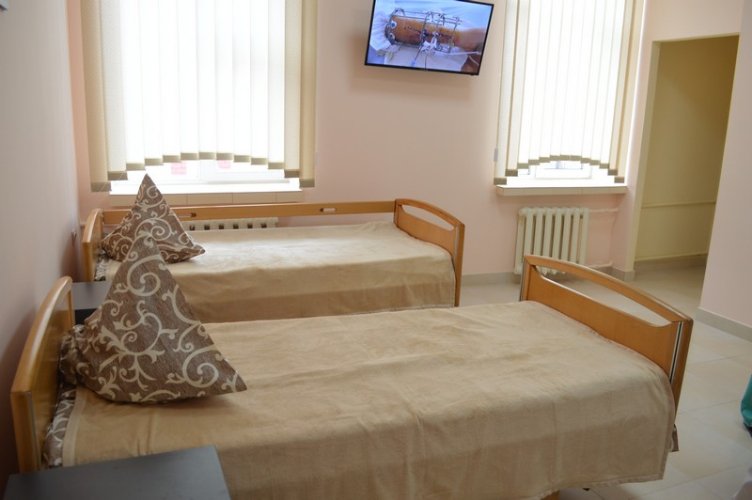 Завідуючий відділенням Ігор Рибак провів екскурсію і показав, що на сьогодні вдалось зробити. А це — дві палати для хворих. Там уже встановлено зручні меблі, телевізори. Одна з них має власний санвузол з душовою кабіною.