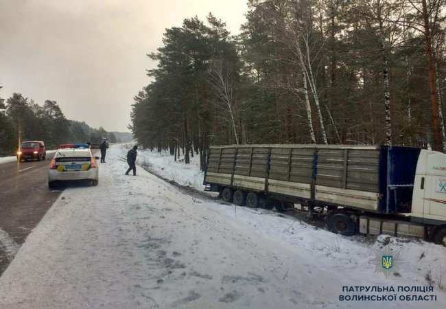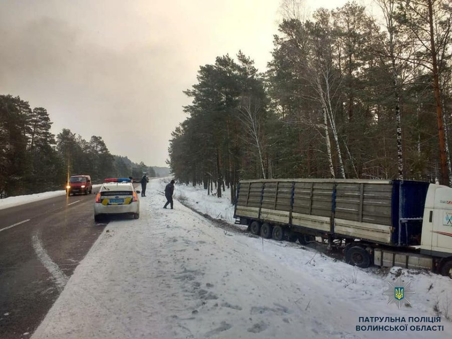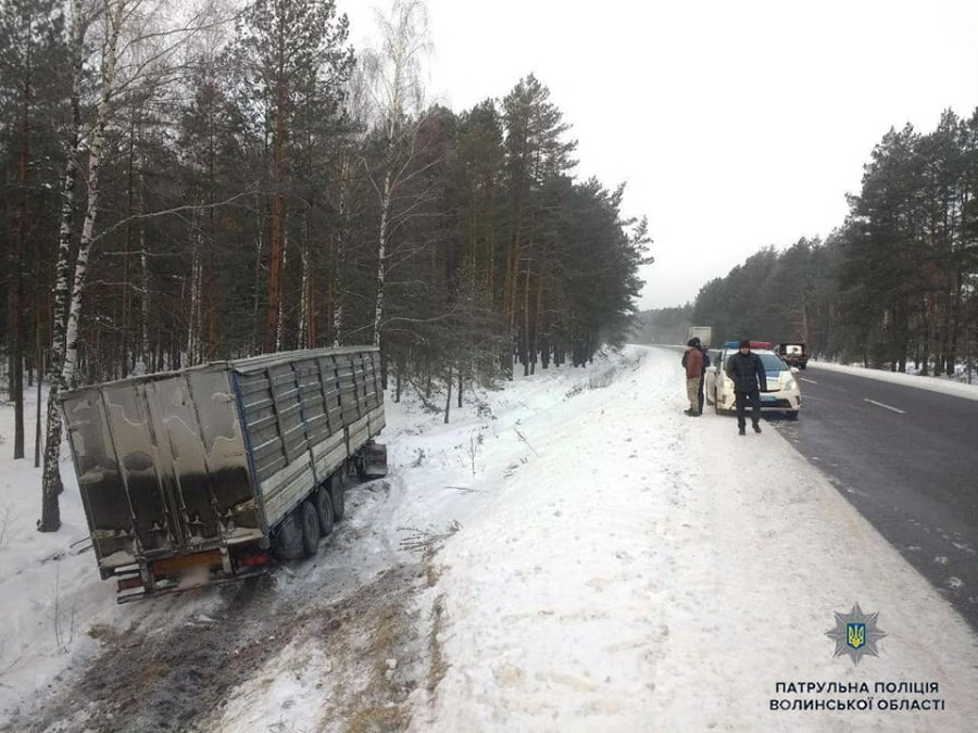 Сьогодні, близько 7год ранку патрульні отримали інформацію, що на А/Д М-07 Київ-Ковель-Ягодин 379км + 500м фура злетіла з дороги.
