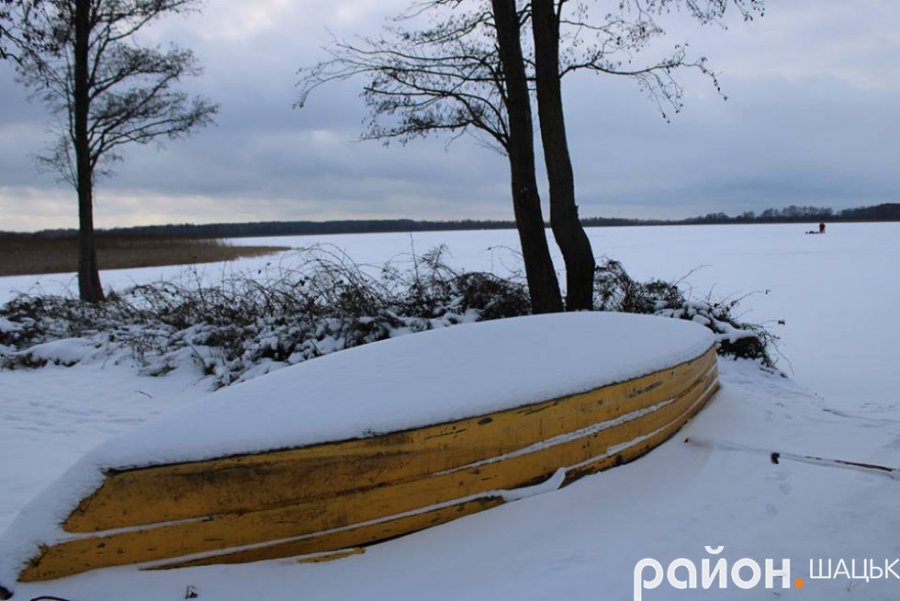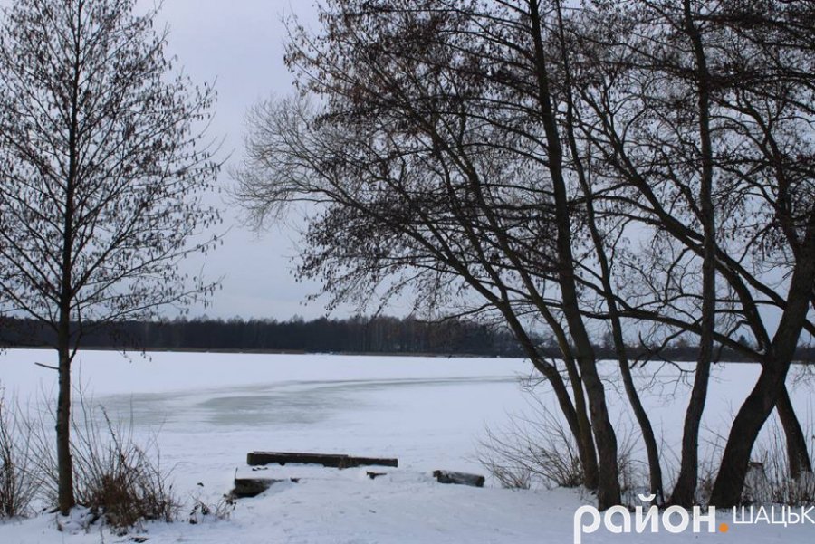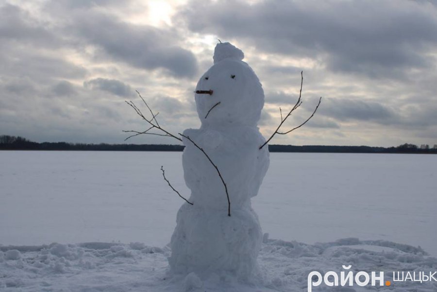 Небо, озера, дерева, кущі і навіть снігова баба, яку невідомі умільці виліпили майже посередині озера Велике Чорне – все сіре і без настрою, - пише Район.Шацьк.