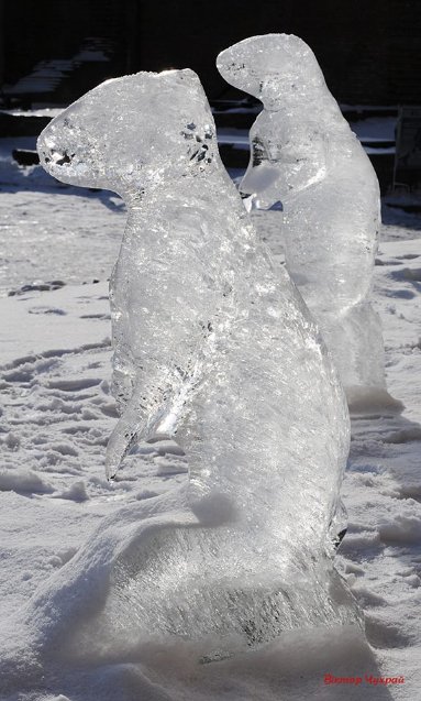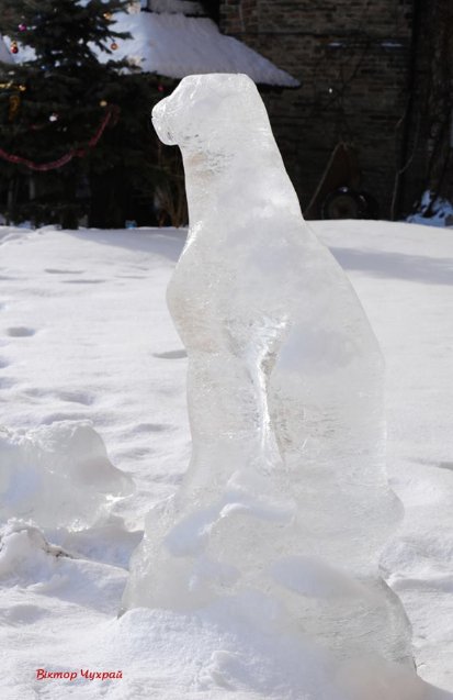 У мережі з'явилися світлини льодових скульптур, яких полишили після святкування новорічного фестивалю у Луцькому замку.