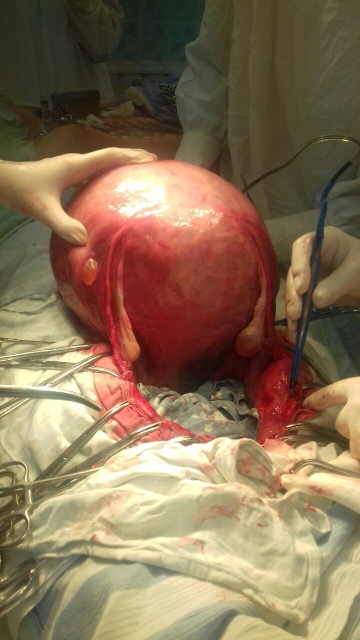 Перша жінка потрапила до лікарні з лейоміомою матки – доброякісною пухлиною, яка росла протягом п’яти років. Новоутворення важило близько чотирьох кілограмів. Воно стискало внутрішні органи, погіршувало самопочуття та зовнішній вигляд, адже виглядало, як доношена вагітність.