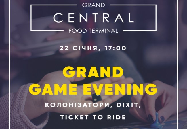 У Grand Central, що знаходиться на 4-му поверсі РЦ «Промінь», 22 січня о 17:00 відбудеться вечір настільних ігор від Молодіжного центру Волині.