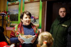 І цього разу не обійшлося без пізнавальних цікавих розмов. Бо ж після колядування і хороводів біля ялинки господарі запросили дітей та їхніх мам до приміщення ЛМЦ, пригостили усіх смачним чаєм з лікувальних лісових трав, а ще кутею. Адже за давнім звичаєм цього дня господині готують так звану голодну кутю, а сам день вважається пісним. Біля розпаленого каміна координатор ЛМЦ Валентина Юхимчук, лісничий Воротнівського лісництва ДП «Ківерцівське ЛГ» Юрій Курчик, пасічник Іван Онищук, прес-секретар Волинського ОУЛМГ Сергій Цюриць розповіли дітям про ліс, його мешканців, роботу лісівників.