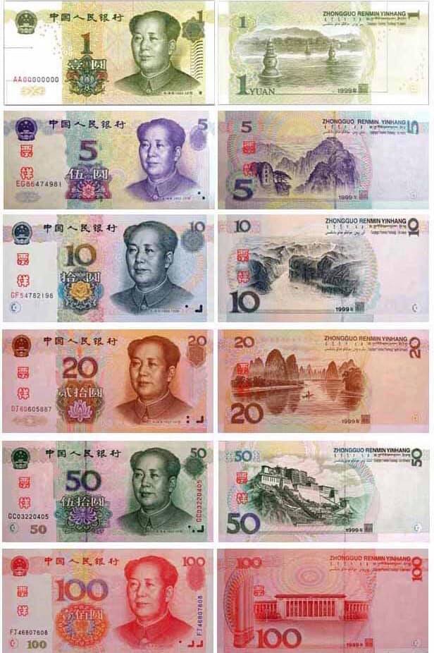 Цікавими та символічними є малюнки на китайських грошах. Наприклад, на лицевій стороні банкнот (крім мао і фенів) зображений Мао Цзедун - китайський політичний діяч 20 століття, засновник сучасної китайської держави, обов'язково з якоюсь рослиною, а на звороті зображена природа чи архітектура Китаю.
