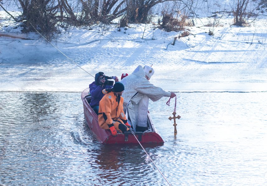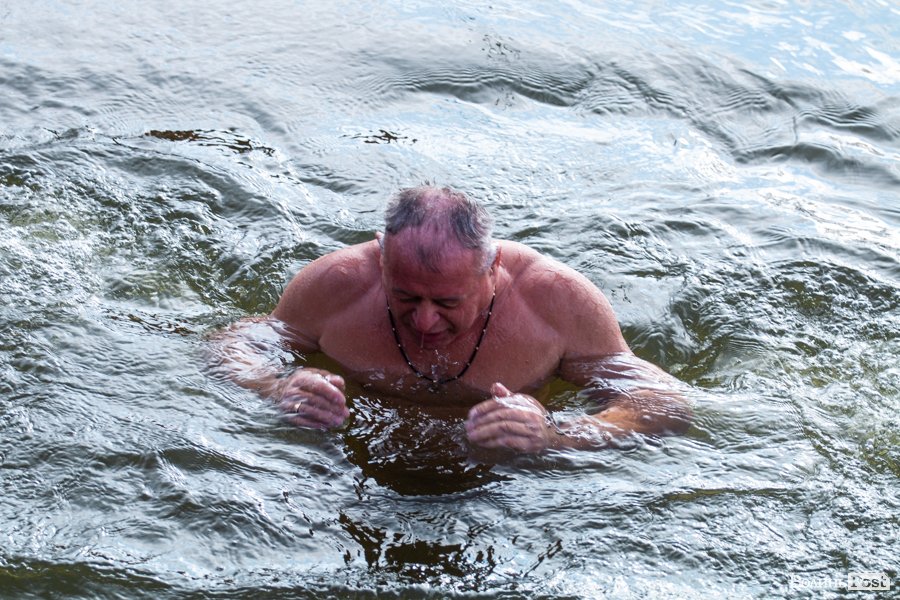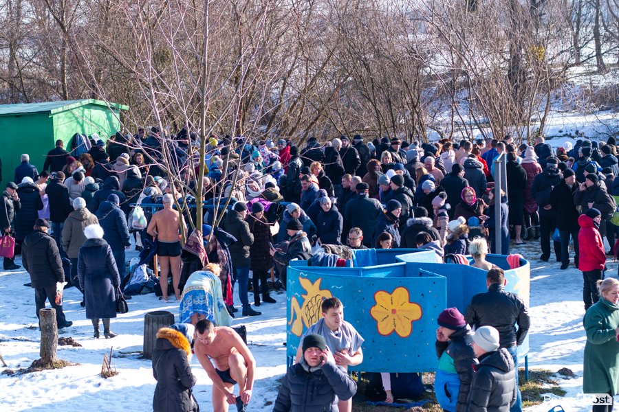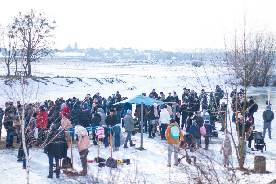 Владику зустріли колядками. Зазначимо, що ще до його приходу люди купалися в річці.