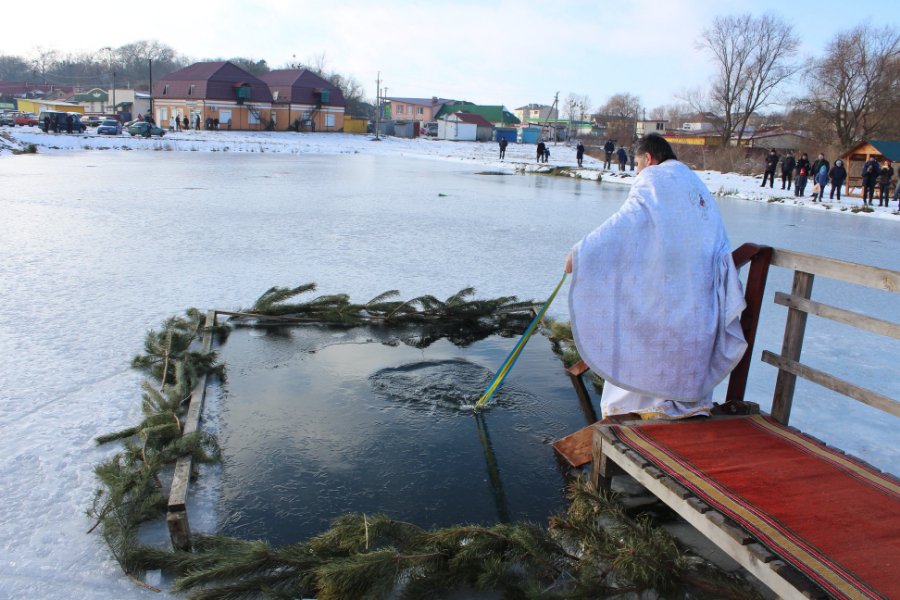 Зауважимо, що воду в ополонці освятив настоятель Свято-Вознесенського храму ПЦУ о. Андрій Сидор.