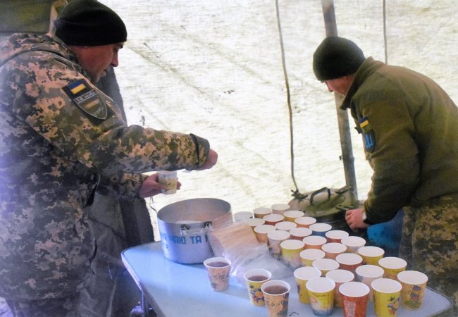 Військові 14 ОМБр після Водохрещенських купань пригощали всіх армійським чаєм. ФОТО