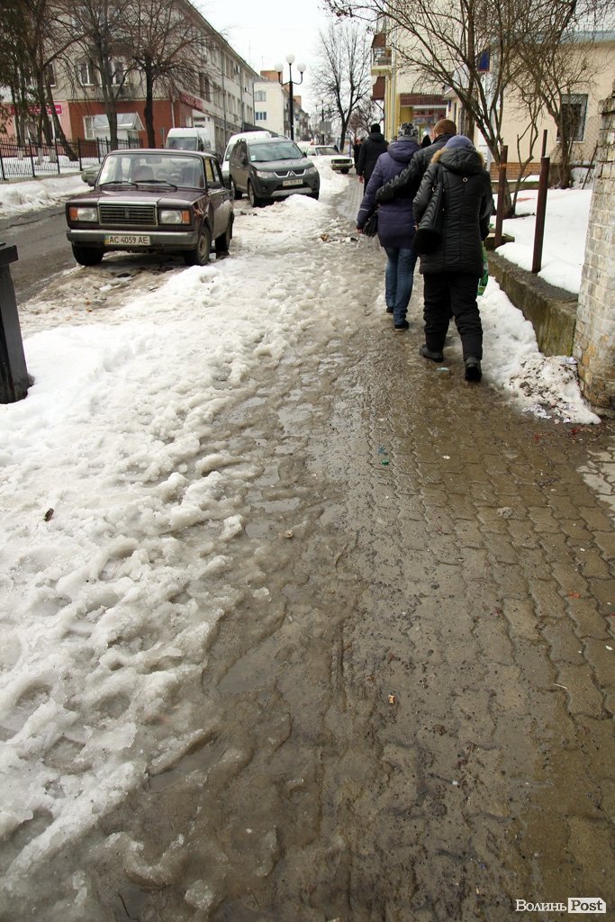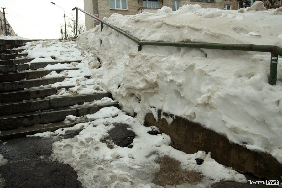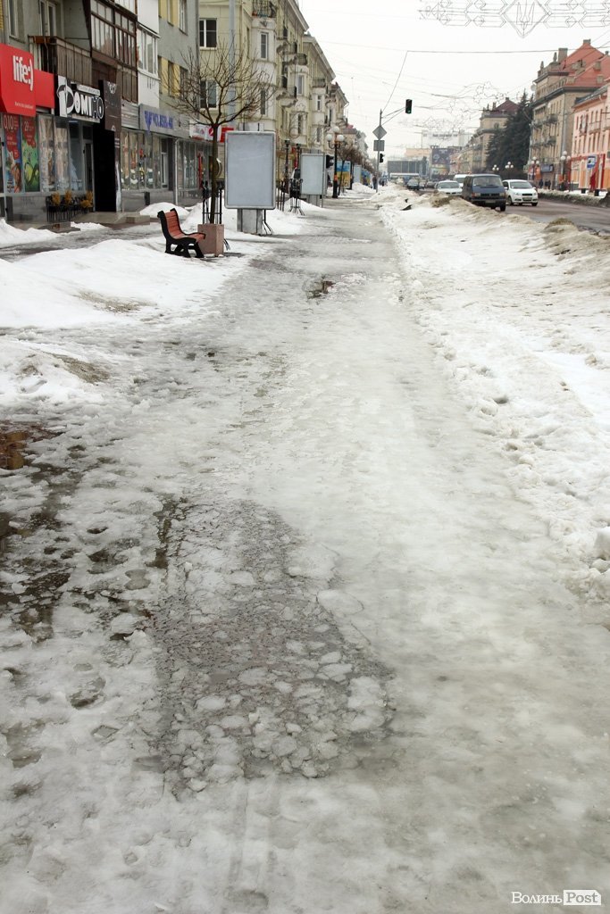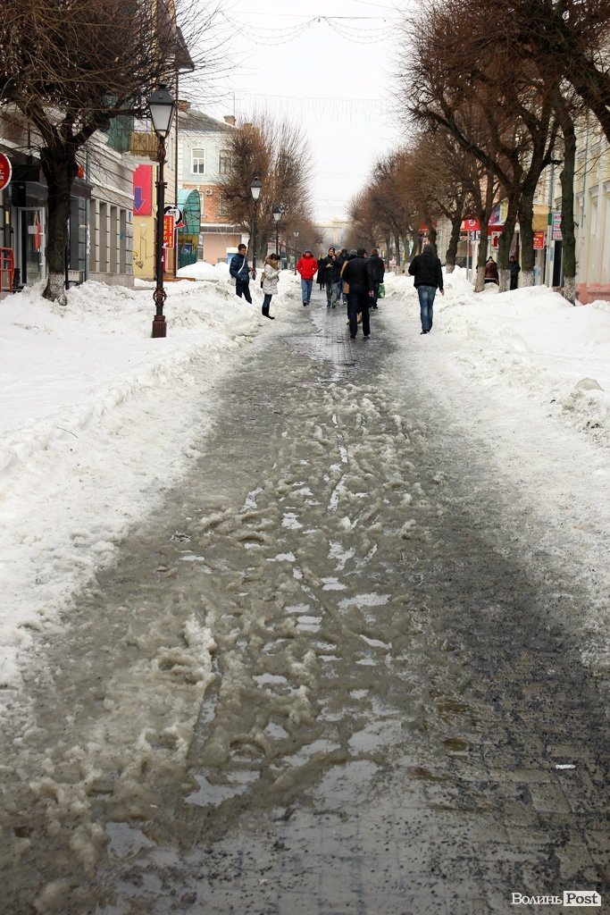 Все, в ін. випадку-це жах..., тротуари-мови нема, ніхто з ПП на пр. Волі, навіть, не удосужиться біля себе сніг розчистити, лише завжди магазини книжні розчищені та напроти тер-рія Фелічити, все, біля ін. "приміщень" часом сходи норм., навіть, не розчищені! Позорище!